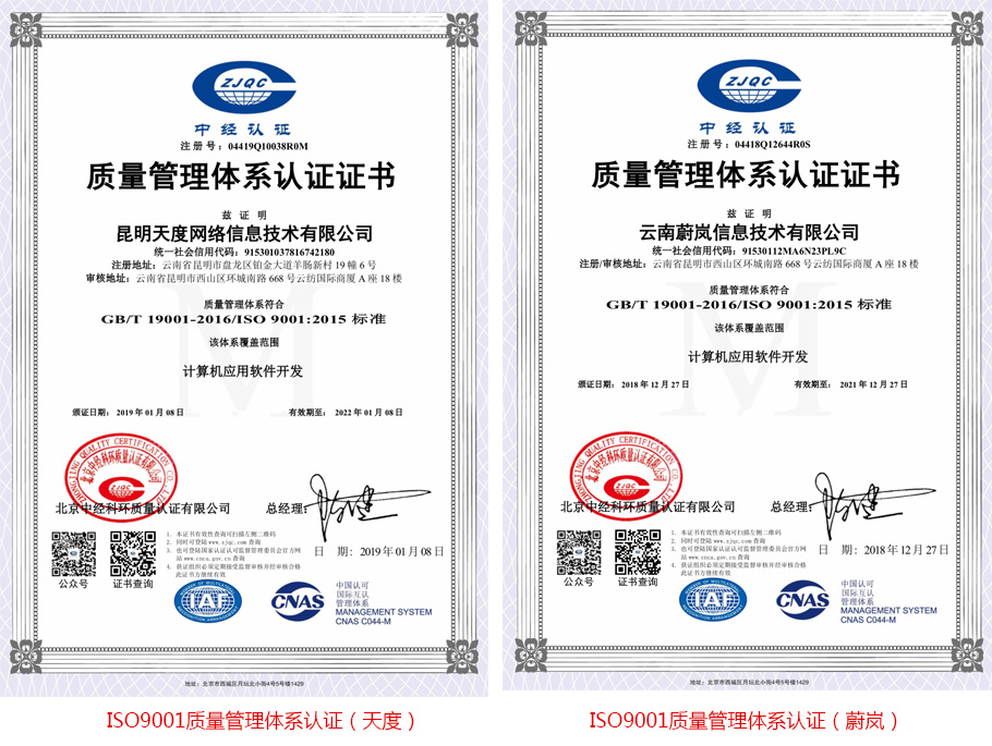 尊龙凯时集团获得ISO27001信息安全管理体系认证、 ISO20000信息技术服务管理体系认证、ISO9001质量管理体系认证等多重体系认证,这标志着在尊龙凯时在信息安全管理、信息技术服务管理、计算机软硬件开发质量管理等方面进入国际标准化体系。